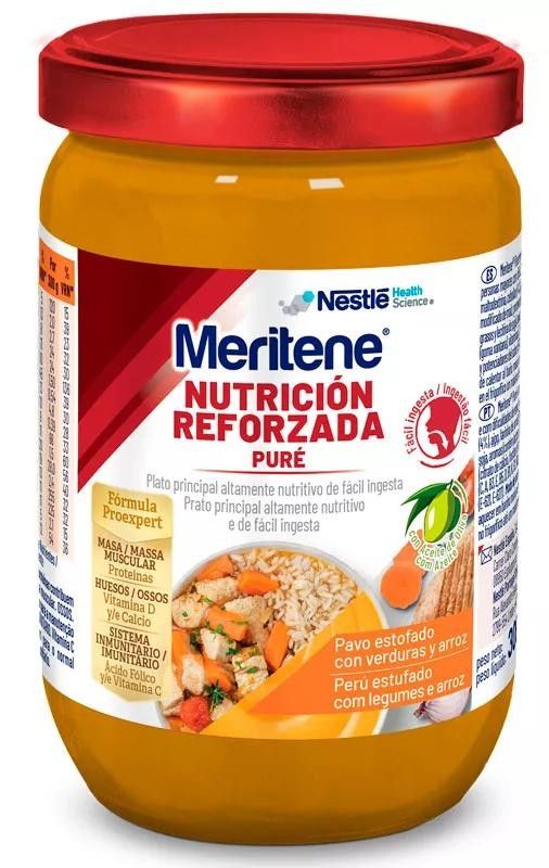 Opción nutritiva pensada especialmente para adultos mayores o personas con dificultades para masticar y tragar. Características principales: Textura suave y homogénea que facilita la deglución. Proteínas de alto valor biológico provenientes del pavo (10%). Verduras como zanahoria (25%) y apio, que aportan fibra, vitaminas y minerales. Arroz (2.4%) como fuente de carbohidratos para energía sostenida. Enriquecido con vitaminas (C, D, B12, etc.) y minerales (calcio) para apoyar huesos y sistema inmunológico. Bajo en sal y colesterol, ideal para dietas controladas.
