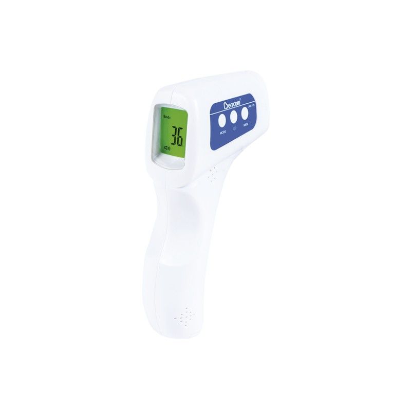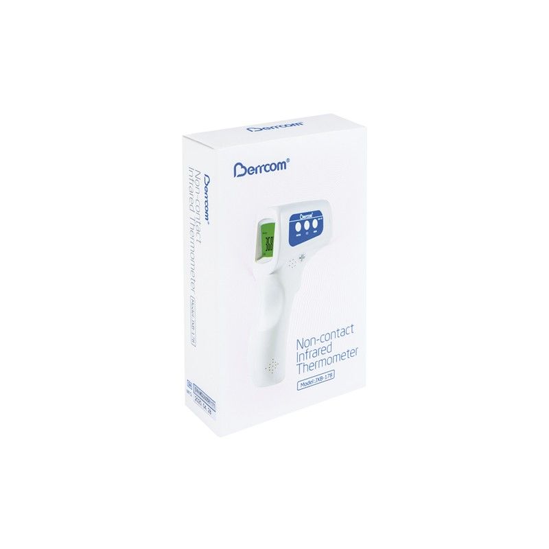 Pantalla de tres colores: – verde cuando es inferior a 37.3°C, – amarillo cuando se encuentra entre 37.4C ° – 37.9 °C – rojo cuando es superior a 38 °C Lee temperaturas en una distancia de 3-5 cm desde la frente. Alarma audible si la temperatura es superior a 38 °C (100.4 °F). Las temperaturas en grados Celsius o Fahrenheit. Tres modos de medición de temperatura corporal, de la estancia y de cualquier superficie, como el agua del baño. Memoria de 32 mediciones. Apagado automático tras 30 segundos sin usar Medidas aparato 155 × 100 × 40 mm